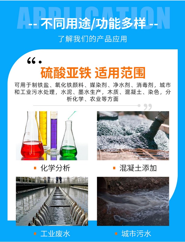 先簡(jiǎn)單給您說(shuō)下硫酸亞鐵,硫酸亞鐵是一種凈水處理劑,具有可調(diào)節(jié)堿性水中的PH值,于水中懸浮物有機(jī)結(jié)合 加速沉淀,用于水質(zhì)凈化和工業(yè)廢水處理。