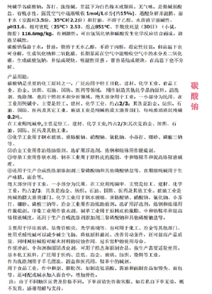 碳酸鈉可以作用脫硫劑 軟化劑 洗滌劑 印染劑,不同領(lǐng)域使用有這不同的工藝。